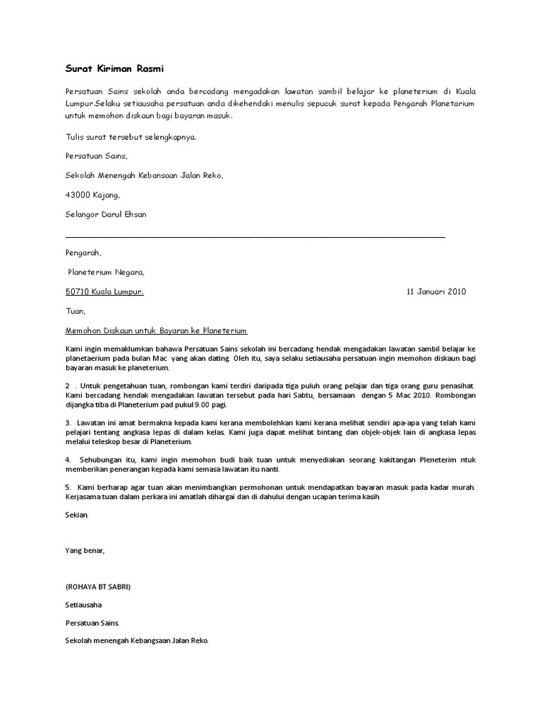 Surat kiriman tidak rasmi 2. Untuk kemudahan semua terutama pelajar berikut dikongsikan beberapa contoh surat kiriman tidak rasmi yang merupakan karangan berformat buat pelajar. ٣ جمادى الآخرة ١٤٤٣ هـ. Surat rasmi permohonan gugur subjek adalah,.