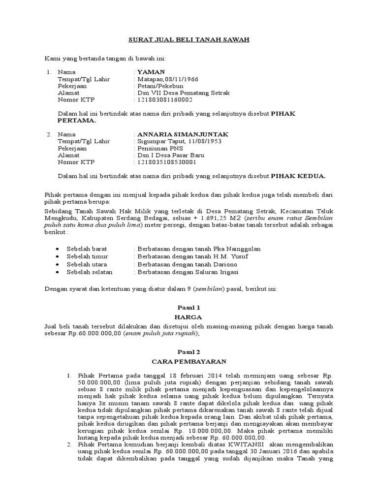 Dalam artikel ni, kami meneroka beberapa perkara asas mengenai surat perjanjian jual beli (spa), atau ada juga yang memanggilnya s&p agreement, yang perlu dimiliki sebelum memulakan sebarang proses belian. Identitas lengkap pihak pertama dan kedua. A short summary of this paper. Kelak, sahabat 99 bisa melihat kejelasan pemilik tanah secara pasti. 10 contoh surat perjanjian jual beli rumah sederhana. Contohnya bertanya empunya/ sesiapa yang berkenaan/ rujuk kepada pihak tanah dan servei.