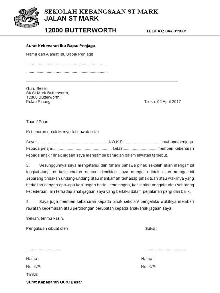 Perakuan ibu bapa penjaga tarikh tandatangan ibu bapa penjaga saya no kad pengenalan selaku ibu bapa penjaga dengan ini memberi kebenaran kepada anak dibawah jagaan saya untuk menyertai program gap year. Cara buat surat permohonan cuti sekolah. Format surat kebenaran ibubapa bagi aktiviti sekolah adalah seperti berikut. Contoh surat makluman pertukaran tarikh have a graphic associated with the othercontoh surat makluman pertukaran tarikh it also will feature a. Menerima surat permohonan pertukaran murid daripada ibu bapa. Contoh surat pertukaran sekolah have an image from the othercontoh surat pertukaran sekolah it also will include a picture of a sort that may.