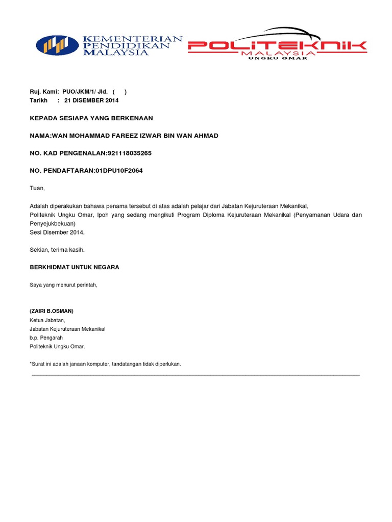 Bagaiman Hendak Dapat Surat Pengesahan Pelajar